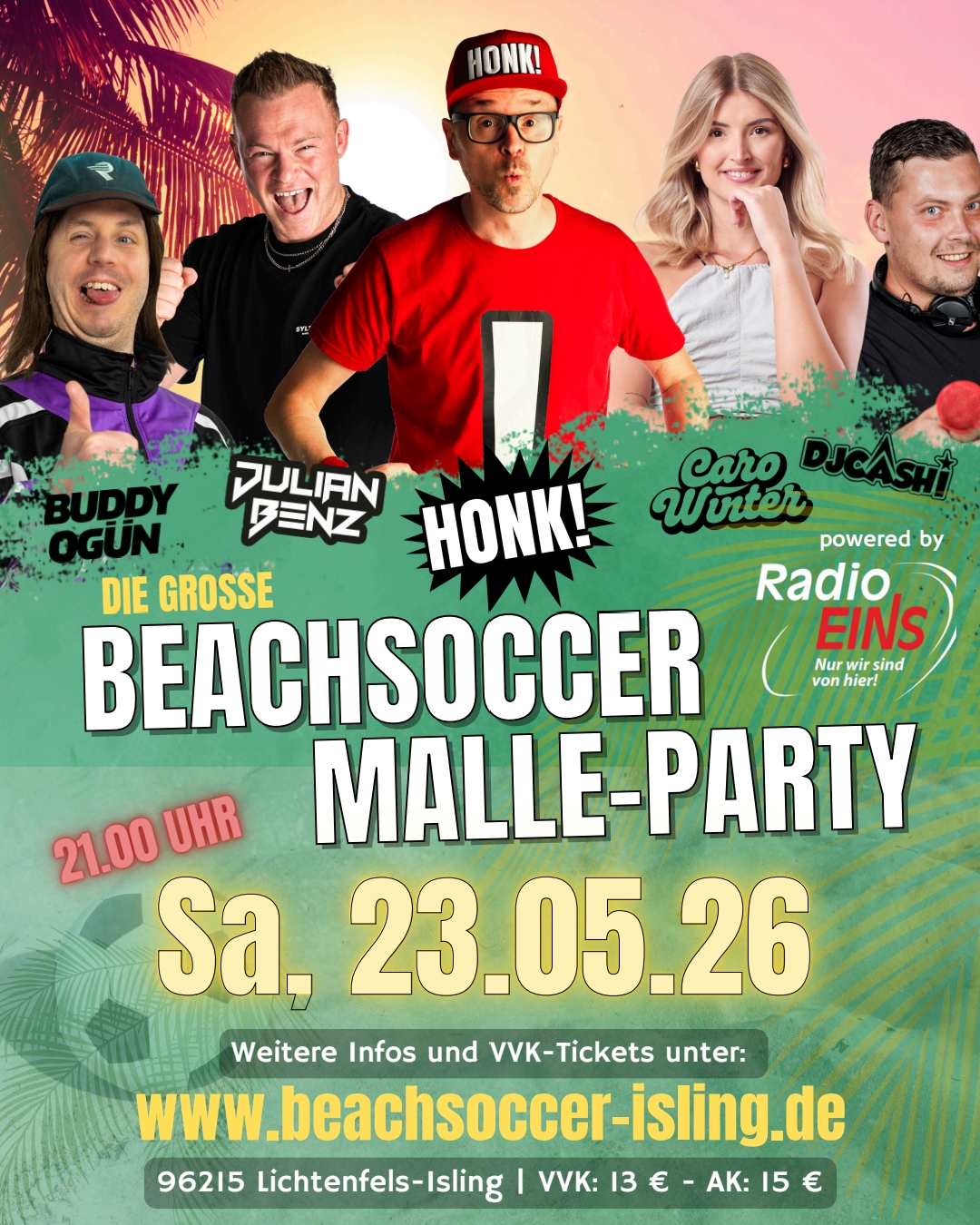 Wir bringen für euch mit Buddy Ogün, Julian Benz, Honk!, Caro Winter und DJ Cashi sage und schreibe gleich fünf Malle-Künstler auf die Bühne! Ballermann-Feeling und garantiert beste Stimmung garantiert!
